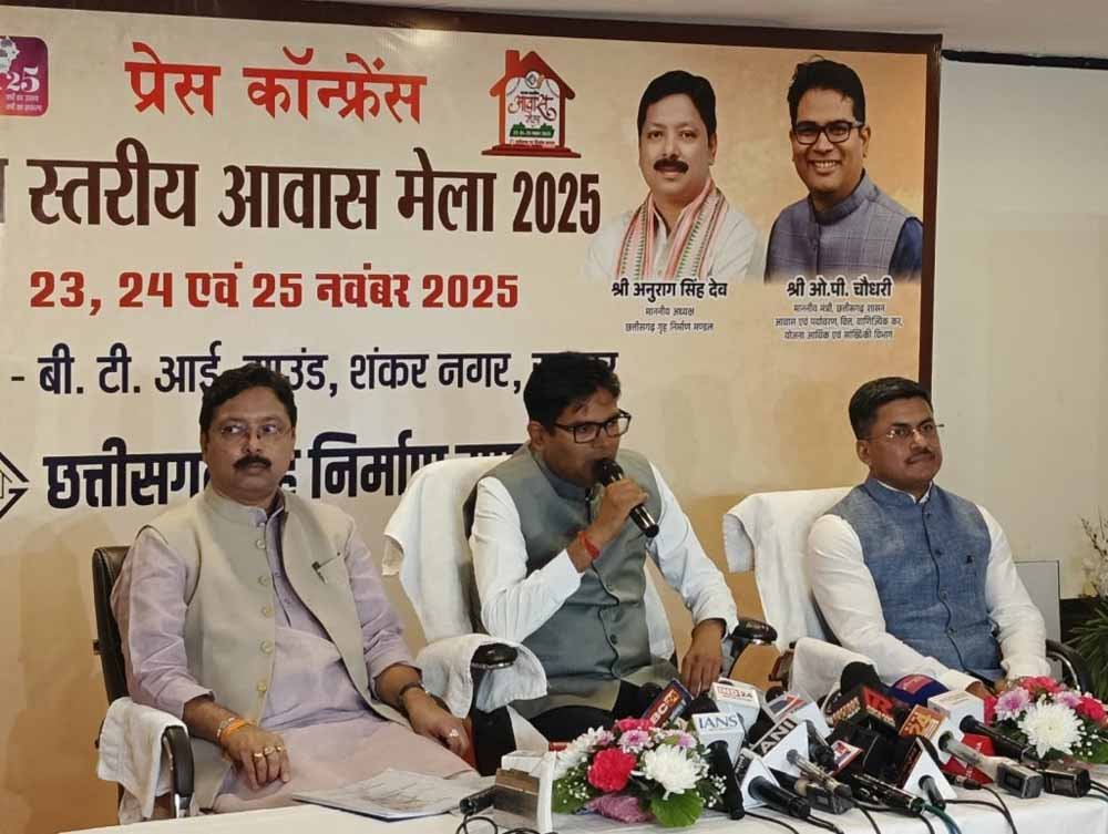 आवासीय योजनाओं की पूरी जानकारी एक ही स्थान पर उपलब्ध कराने के लिए छत्तीसगढ़ गृह निर्माण मंडल राज्य स्तरीय आवास मेला आयोजित कर रहा है। यह मेला 23, 24 और 25 नवंबर को राजधानी रायपुर के शंकर नगर स्थित बीटीआई ग्राउंड में होगा। मेले को लेकर आज वित्त मंत्री ओपी चौधरी और हाउसिंग बोर्ड अध्यक्ष अनुराग सिंहदेव ने संयुक्त प्रेस कॉन्फ्रेंस की। इस कॉन्फ्रेंस में हाउसिंग बोर्ड के कमिश्नर अवनीश शरण भी मौजूद रहे।