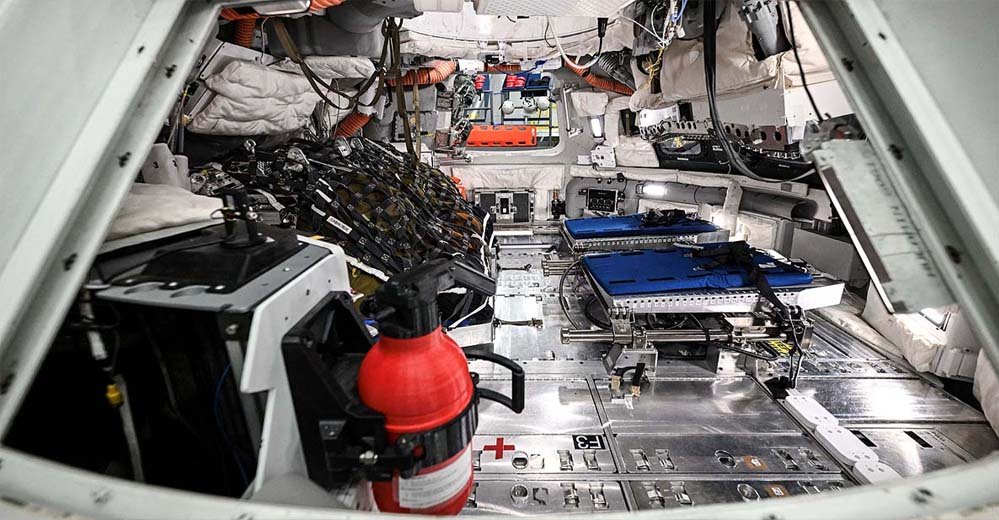 टॉयलेट फ्लोर के नीचे है – यही एकमात्र जगह है जहां एस्ट्रोनॉट्स अकेले रह सकते हैं. अंदर बहुत शोर होता है, इसलिए कान की सुरक्षा जरूरी है. माइक्रोग्रैविटी में काम करने के लिए सक्शन सिस्टम लगा है. मल को डिस्पोजेबल बैग में रखकर दबाया जाता है. पृथ्वी पर वापस लाया जाएगा।