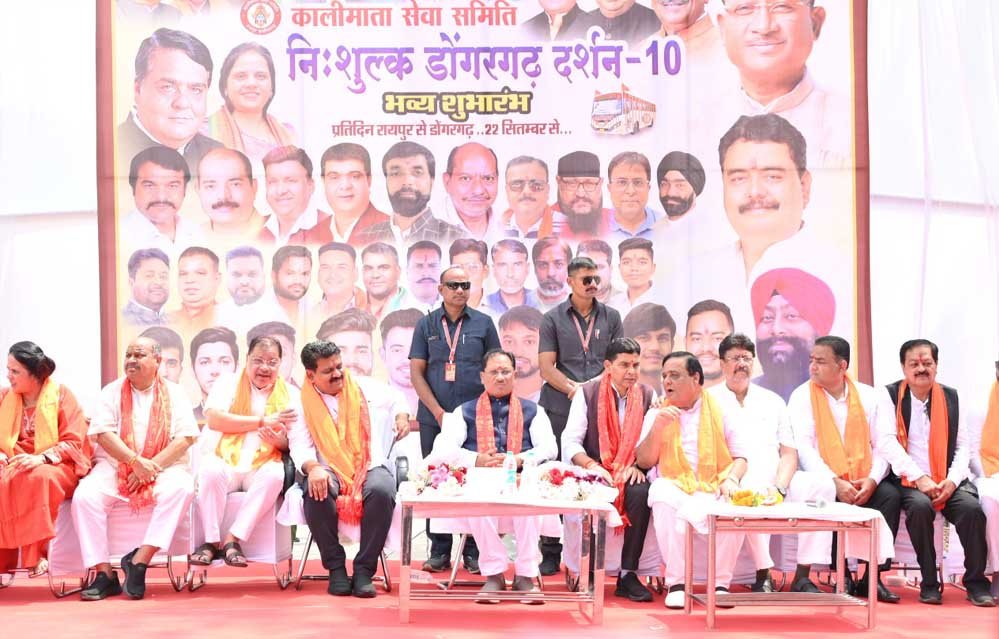 मुख्यमंत्री विष्णु देव साय ने आज रायपुर शहर के आकाशवाणी चौक स्थित माँ काली मंदिर से डोंगरगढ़ तक निःशुल्क बस सेवा का शुभारंभ किया। रायपुर से माँ बम्लेश्वरी के दर्शन के लिए डोंगरगढ़ जाने वाले श्रद्धालुओं को इस बस सेवा का नि:शुल्क लाभ मिलेगा। इस अवसर पर मुख्यमंत्री साय ने कालीमाता सेवा समिति की इस पहल की सराहना करते हुए समिति के पदाधिकारियों को बधाई एवं शुभकामनाएँ दीं। उन्होंने माँ काली और माँ बम्लेश्वरी से छत्तीसगढ़ में खुशहाली, समृद्धि और शांति की कामना की। साथ ही सभी प्रदेशवासियों को शारदीय नवरात्र की हार्दिक बधाई और शुभकामनाएँ भी प्रेषित कीं।