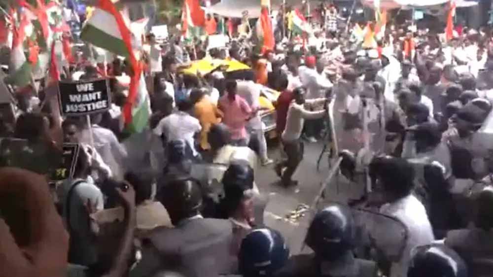 आरजी कर घटना की बरसी पर पश्चिम बंगाल सचिवालय की ओर मार्च करते हुए प्रदर्शनकारियों ने हावड़ा में पुलिस अवरोधक तोड़ने की कोशिश की। सचिवालय की ओर मार्च के दौरान घेरे को तोड़ने की कोशिश कर रहे प्रदर्शनकारियों पर पुलिस ने लाठीचार्ज किया। वहीं, पुलिस द्वारा रोके जाने पर भाजपा नेता शुभेंदु अधिकारी, अग्निमित्रा पॉल धरने पर बैठे गए।