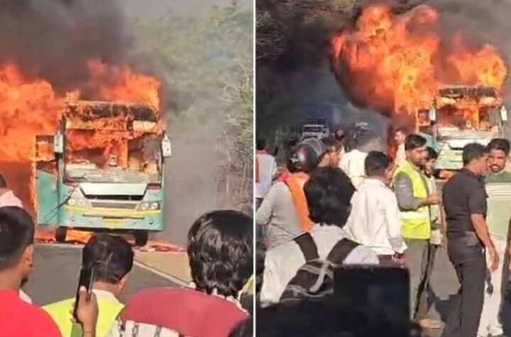 रीवा से सूरत जा रही बस में आग, इंदौर-भोपाल हाईवे पर मची अफरा-तफरी