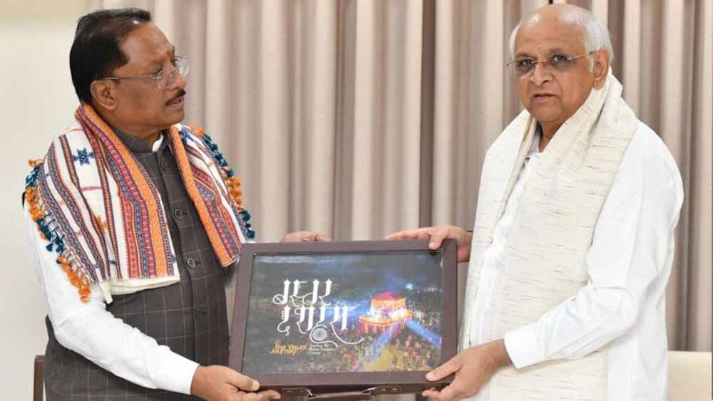 मुख्यमंत्री साय ने गुजरात के मुख्यमंत्री भूपेंद्र पटेल को बस्तर की लोककला और छत्तीसगढ़ के सांस्कृतिक गौरव पर आधारित बस्तर आर्ट तथा “बस्तर दशहरा” की कॉफी टेबल बुक भेंट की.