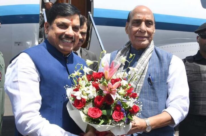 मुख्यमंत्री डॉ. यादव ने की केंद्रीय रक्षा मंत्री राजनाथ सिंह की आत्मीय अगवानी
