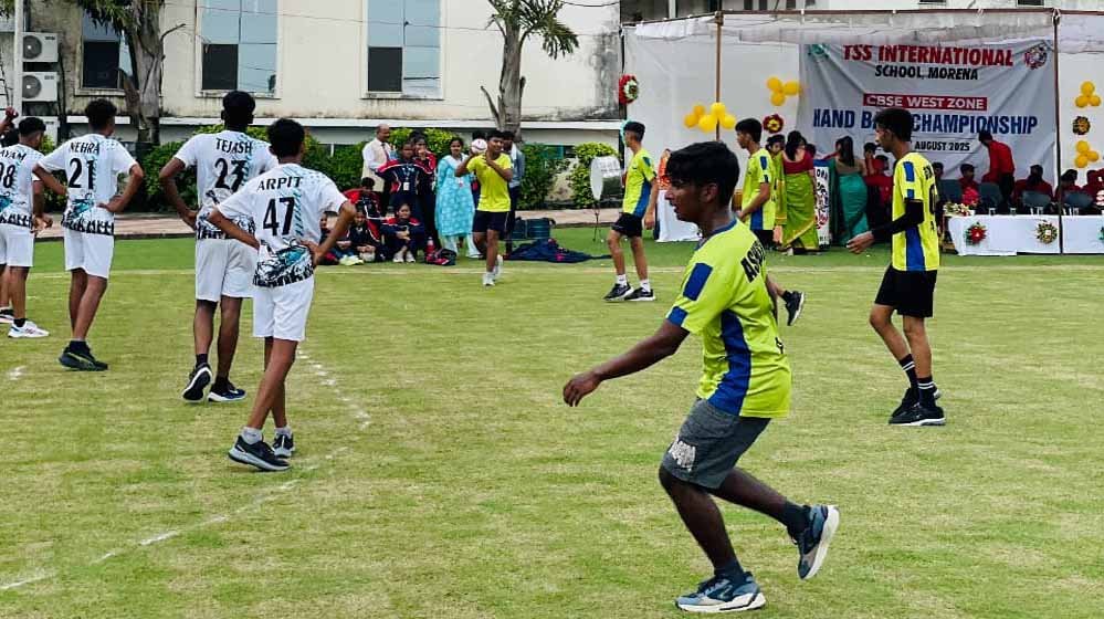 चंबल की धरती पर खिलाड़ियों का अनोखा संगम देखने को मिल रहा है मुरैना के टीएसएस इंटरनेशनल स्कूल में 4 दिवसीय वेस्ट जोन हैंडबॉल प्रतियोगिता का शुभारंभ भव्य समारोह के बीच हुआ. खेल महोत्सव में गुजरात, राजस्थान और मध्यप्रदेश से आई लगभग 700 छात्र-छात्राएं प्रतिभा का प्रदर्शन कर रहे हैं. प्रतियोगिता में करीब 50 से अधिक टीमें बनाई गई हैं, जिन्हें अंडर-14, अंडर-17 और अंडर-19 तीन श्रेणियों में विभाजित किया गया है. मैदान में पहले ही दिन खिलाड़ियों के जोश ने दर्शकों का दिल जीत लिया.