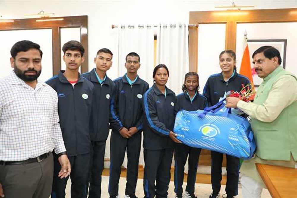 मुख्यमंत्री डॉ. यादव ने सभी खिलाड़ियों को बधाई देकर उनके उज्ज्वल भविष्य की शुभकामनाएं दीं। उन्होंने कहा कि यह देश और प्रदेश के लिए कुछ कर दिखाने का मौका है। इस स्वर्णिम अवसर का भरपूर लाभ उठाएं। मुख्यमंत्री ने सभी खिलाड़ियों को फुटबॉल किट भेंट की। उल्लेखनीय है कि प्रशिक्षक सुश्री लक्ष्मी सहीस के नेतृत्व में कुमारी सानिया कुण्डे (14 वर्ष), कुमारी सुहानी कोल (15 वर्ष), प्रीतम कुमार (14 वर्ष), वीरेन्द्र बैगा (16 वर्ष) और श्री मनीष घसिया (16 वर्ष) प्रशिक्षण लेने जर्मनी जा रहे हैं।