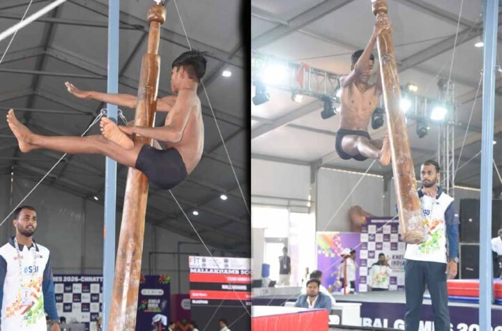 गांधी स्टेडियम अंबिकापुर में मल्लखंभ का भव्य शुभारंभ, खेलो इंडिया ट्राइबल गेम्स 2026 में पारंपरिक खेलों का दमदार प्रदर्शन