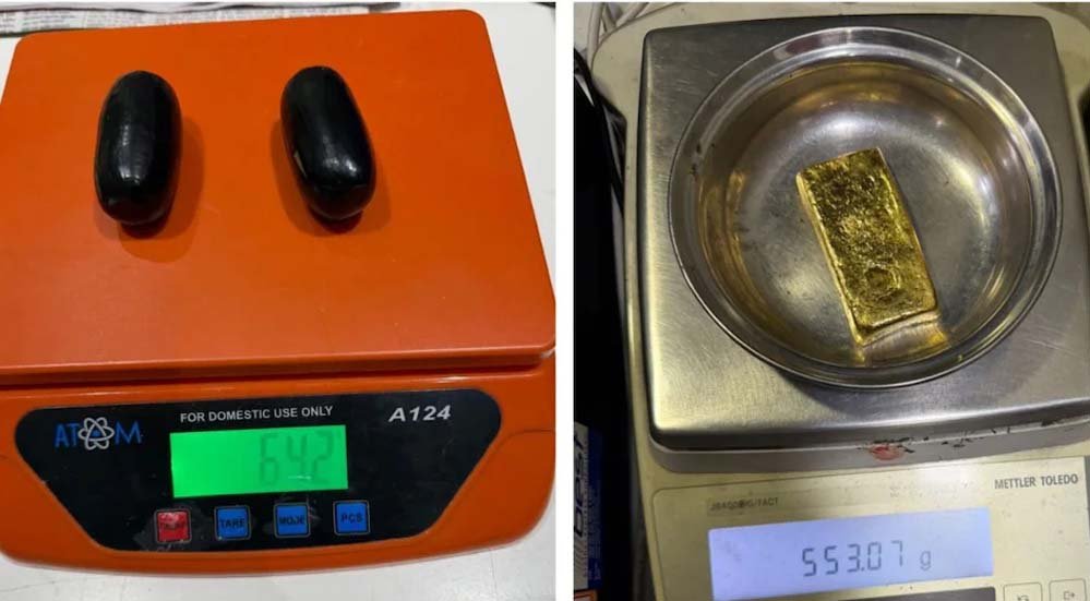 जिसमें जांच के दौरान महिला के गुप्तांग से काले टेप में लिपटी दो अंडाकार कैप्सूल बरामद हुई. इन कैप्सूलों में तरल रसायनों के साथ मिश्रित सोने का पेस्ट भरा हुआ था, जिसका कुल वजन 643.28 ग्राम था. इसके बाद विशेषज्ञों की उपस्थिति में शुद्धिकरण प्रक्रिया की गई और इनसे 999.0 शुद्धता का 553.07 ग्राम (24 कैरेट) सोना प्राप्त किया गया. जब्त किए गए सोने का बाजार मूल्य 83,29,234 रुपये और कर मूल्य 75,58,393 रुपये आंका गया है।