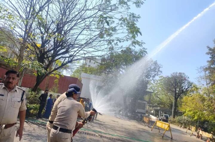 सुरक्षाकर्मियों को आधुनिक उपकरणों से आग बुझाने का दिया प्रशिक्षण