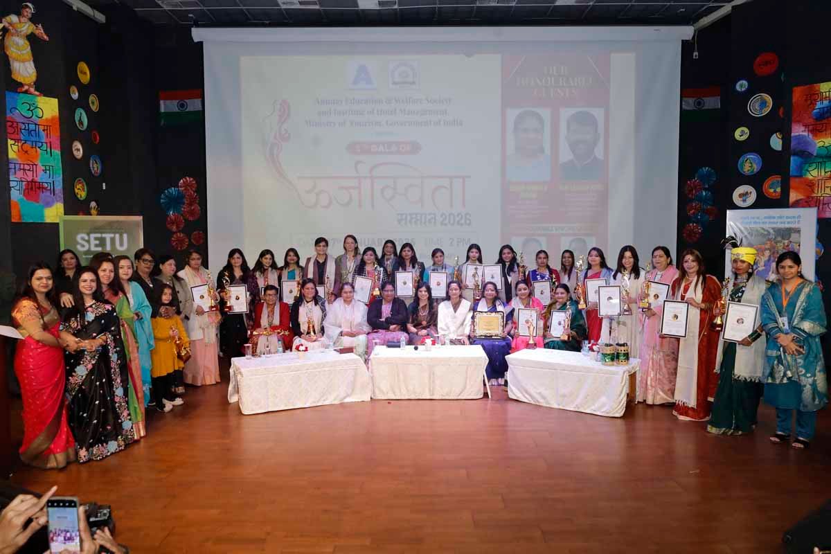 अनुनय एजुकेशन एंड वेलफेयर सोसाइटी के तत्वावधान में भारतीय होटल प्रबंधन संस्थान भोपाल में बुधवार को 25 महिला विभूतियों को ऊर्जस्विता सम्मान से सम्मानित किया गया। कार्यक्रम की अध्यक्षता महिला एवं बाल विकास विभाग की मंत्री निर्मला भूरिया ने की और मुख्य अतिथि की भूमिका पशुपालन राज्यमंत्री (स्वतंत्र प्रभार) लखन पटेल ने निभाई। महापौर मालती राय और भाजपा महिला मोर्चा की प्रदेश अध्यक्ष अश्विनी परांजपे विशेष अतिथि के तौर पर मौजूद थे। इस अवसर पर कई जिलों में कलेक्टर की भूमिका निभाने वाली जयश्री कियावत को लाइफटाइम अचीवमेंट पुरस्कार से सम्मानित किया गया।