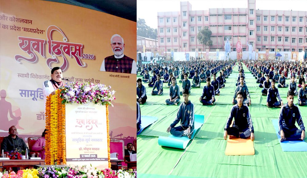 मुख्यमंत्री डॉ. मोहन यादव ने कहा है कि स्वामी विवेकानंद जी ने अपने विचारों से राष्ट्र के युवाओं में नई ऊर्जा का संचार किया। वे एक महान चिंतक थे और केवल शरीर से बल्कि कर्म से भी युवा थे। उन्होंने कहा कि योग हमारी भारतीय परंपरा का हिस्सा है। सूर्य नमस्कार की यौगिक क्रियाएं हमारे संपूर्ण जीवन का निचोड़ है। यह केवल एक शारीरिक व्यायाम नहीं है, बल्कि हमारे जीवन को सामान्यता से उत्कृष्टता की ओर लेकर जाने का बड़ा माध्यम है। हम रोजाना सूर्य नमस्कार में समाहित 12 योग क्रियाओं के जरिए ही अपने शरीर को निरोगी बनाकर सुखी रह सकते हैं। मुख्यमंत्री डॉ. यादव सोमवार को राष्ट्रीय युवा दिवस (12 जनवरी) के अवसर पर भोपाल के शासकीय सुभाष उत्कृष्ट उच्चतर माध्यमिक विद्यालय में आयोजित राज्य स्तरीय सामूहिक सूर्य नमस्कार एवं प्राणायाम कार्यक्रम को संबोधित कर रहे थे।