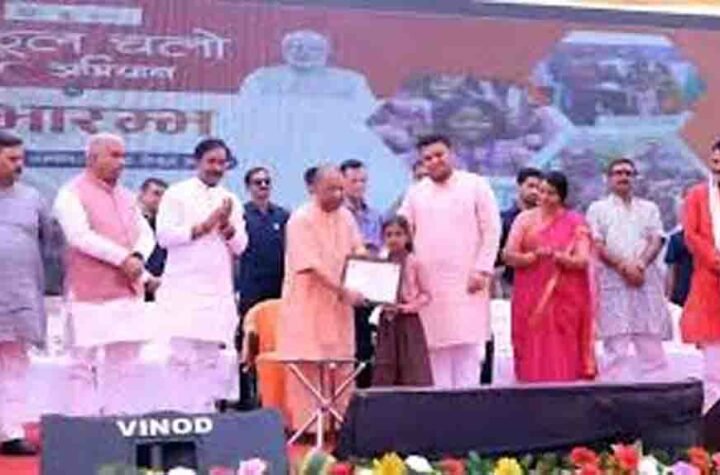 बच्चों की मुस्कान और योगी का दुलार, कंपोजिट स्कूल में बंटे बैग और किताबें, पाँच निपुण स्कूल हुए सम्मानित