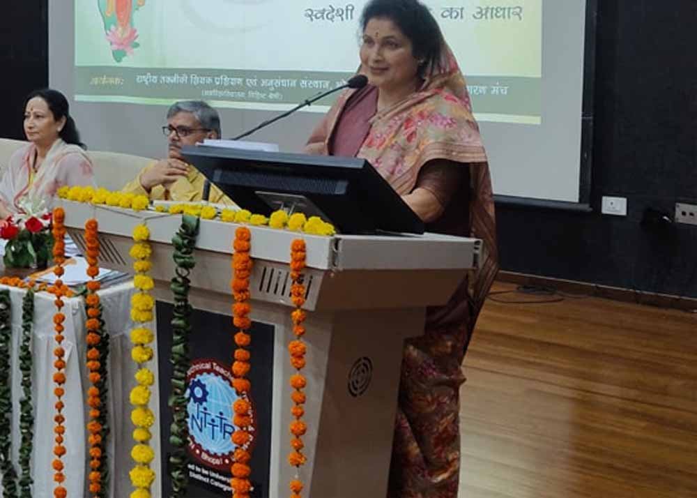 पिछड़ा वर्ग एवं अल्पसंख्यक कल्याण राज्यमंत्री (स्वतंत्र प्रभार) श्रीमती कृष्णा गौर ने कहा कि स्वदेशी से स्वावलंबन और स्वावलंबन से सशक्त भारत बनता है। यह बात रविवार को भोपाल स्थित राष्ट्रीय तकनीकी शिक्षण प्रशिक्षण एवं अनुसंधान संस्थान में आयोजित दो दिवसीय स्वदेशी सुरक्षा एवं स्वावलंबन अभियान के अखिल भारतीय महिला प्रशिक्षण के समापन कार्यक्रम में कहीं।
