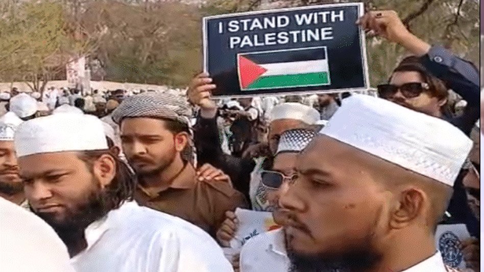 भोपाल में फिलिस्तीन के समर्थन में बैनर भोपाल में ईदगाह के बाहर कुछ युवा फिलिस्तीन के समर्थन में बैनर लेकर खड़े नजर आए। यहां नमाज के बाद फिलिस्तीन के लोगों के लिए दुआ भी पढ़ी गई। मोती मस्जिद में भी दुआ के दौरान मुफ्ती अब्दुल कलाम साहब ने यमन और फिलिस्तीन में मासूमों के कत्ल-ए-आम के खिलाफ दुआ कराई। यहां वक्फ बोर्ड की जायदाद की हिफाजत के लिए भी दुआ पढ़ी गई।
