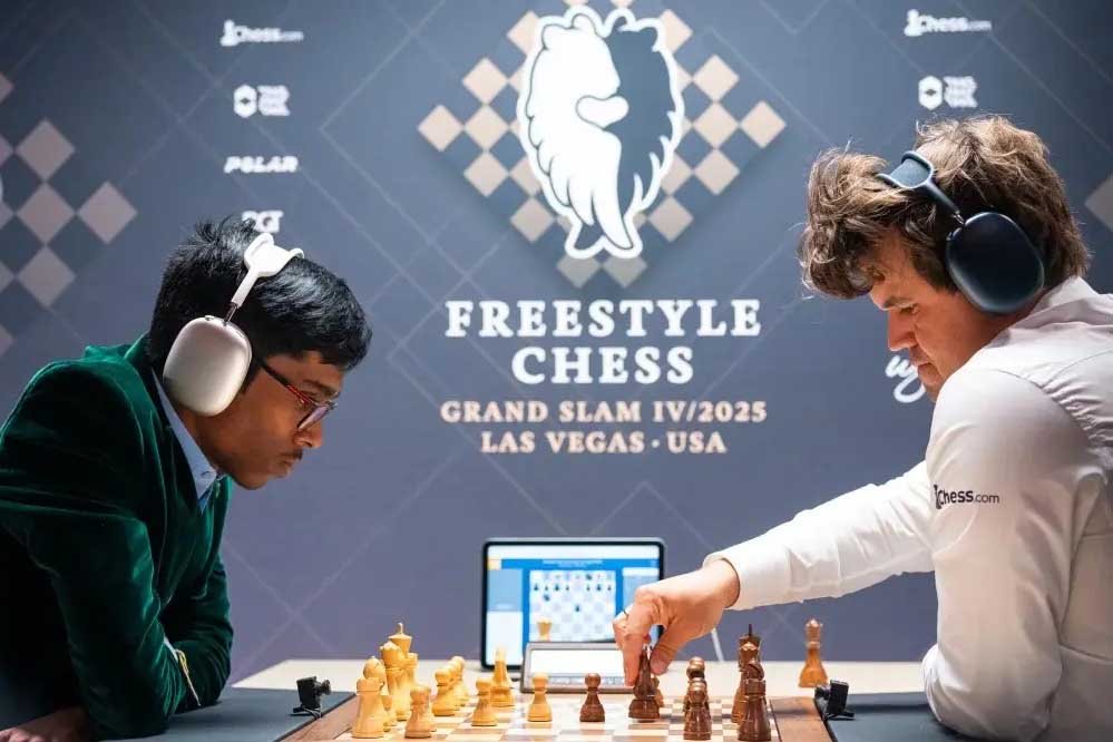 प्रज्ञानंद अब आठ खिलाड़ियों वाले ग्रुप व्हाइट में 4.5 अंकों के साथ संयुक्त बढ़त बनाए हुए हैं। प्रज्ञानंद ने टूर्नामेंट की शुरुआत नोदिरबेक अब्दुसत्तोरोव के खिलाफ काले मोहरों से ड्रॉ खेलकर की। इसके बाद उन्होंने असाउबायेवा को हराया। तीसरे राउंड में उन्होंने काले मोहरों से खेलते हुए कीमर को हराया और फिर चौथे राउंड में कार्लसन को चौंका दिया।हालांकि, कार्लसन पेरिस और कार्लजूए में फ्रीस्टाइल शतरंज ग्रैंड स्लैम टूर्नामेंट जीत चुके हैं। वह पूरे टूर में शीर्ष पर थे, लेकिन उन्हें अब लास वेगास में खिताबी दौड़ से बाहर होना पड़ा है। राउंड-रॉबिन चरण में उतार-चढ़ाव भरे दिन के बाद कार्लसन अपने ग्रुप में संयुक्त रूप से चौथे स्थान पर रहे और प्लेऑफ में लेवोन अरोनियन से हारकर बाहर हो गए। अब वह निचले ब्रैकेट में पहुंच गए हैं, जहां तीसरे से ऊपर नहीं आ सकते।