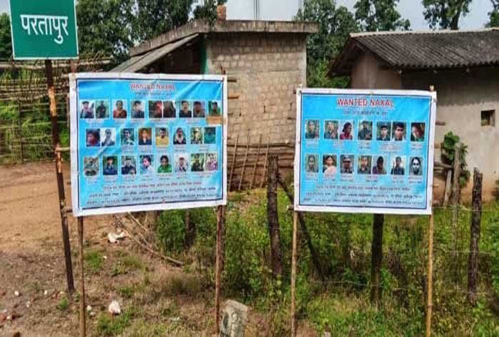 पोस्टर में पांच लाख के इनामी माओवादियों के नाम