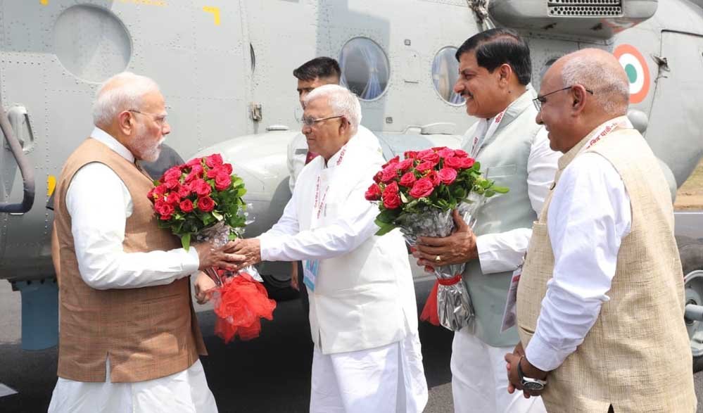 प्रधानमंत्री नरेन्द्र मोदी विशेष विमान से बुधवार को इंदौर पहुंचे, जहां उनका हार्दिक स्वागत और अभिनंदन किया गया। इंदौर एयरपोर्ट पर राज्य सरकार की ओर से स्वागत के लिये मनोनीत मिनिस्टर इन वेटिंग जल संसाधन मंत्री तुलसीराम सिलावट ने अंगवस्त्र भेंट कर आत्मीय स्वागत किया। प्रधानमंत्री मोदी का महापौर पुष्यमित्र भार्गव, सांसद शंकर लालवानी और सुकविता पाटीदार, विधायक रमेश मेंदोला, गोलू शुक्ला, श्रीमती मालिनी गौड़ तथा महेंद्र हार्डिया, मुख्य सचिव अनुराग जैन, डीजीपी कैलाश मकवाना सहित जनप्रतिनिधि, वरिष्ठ प्रशासनिक एवं पुलिस अधिकारियों ने भी आत्मीय स्वागत किया। प्रधानमंत्री मोदी इंदौर से धार जिले के भैंसोदा के लिये हैलीकाप्टर से रवाना हुए।