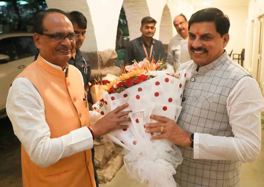 केंद्रीय कृषि एवं किसान कल्याण मंत्री शिवराज सिंह चौहान सोमवार को मुख्यमंत्री निवास पहुंचे और मुख्यमंत्री डॉ. मोहन यादव से सौजन्य भेंट की। मुख्यमंत्री ने पुष्पगुच्छ भेंट कर उनका गर्मजोशी से स्वागत किया। बाद में डॉ. यादव ने मुलाकात की तस्वीरें सोशल मीडिया प्लेटफॉर्म एक्स पर साझा करते हुए लिखा कि आज भोपाल निवास पर केंद्रीय कृषि एवं किसान कल्याण तथा ग्रामीण विकास मंत्री आदरणीय भाईसाहब शिवराज सिंह चौहान जी से सौजन्य भेंट हुई।