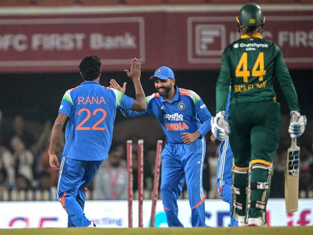 350 रनों के लक्ष्य का पीछा करने उतरी दक्षिण अफ्रीका की शुरुआत बेहद खराब रही। टीम ने दूसरे ओवर में ही दो विकेट गंवा दिए। रिकल्टन और डिकॉक खाता नहीं खोल सके। हर्षित ने दोनों बल्लेबाजों को पवेलियन का रास्ता दिखाया। अर्शदीप सिंह ने एडन मार्करम को आउट किया। एडन सात रन ही बना सके।