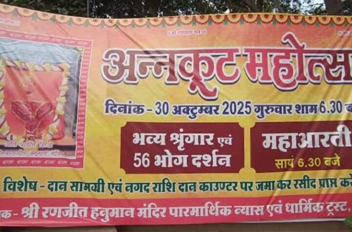 1 min read अन्नकूट महोत्सव: रणजीत हनुमान मंदिर में 30 अक्टूबर को विशेष प्रसादी, 101 मंदिरों तक पहुंचेगी भोग सामग्री October 27, 2025 Rashtra Abhiyan News