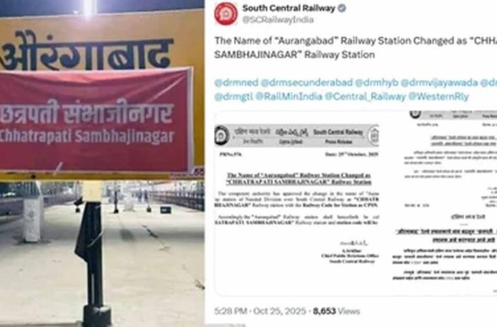 1 min read रेलवे स्टेशन का नाम बदला: औरंगाबाद अब छत्रपति संभाजीनगर October 26, 2025 Rashtra Abhiyan News