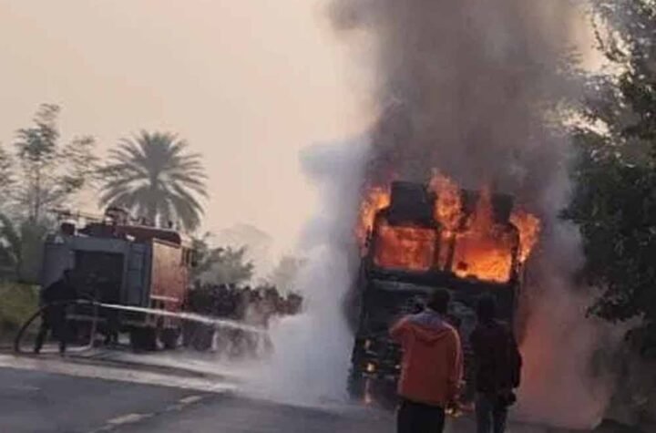 1 min read MP के मंडला में ट्रक में धमाका: टायर फटते ही लगी भीषण आग, देखते ही देखते अफरा-तफरी November 14, 2025 Rashtra Abhiyan News