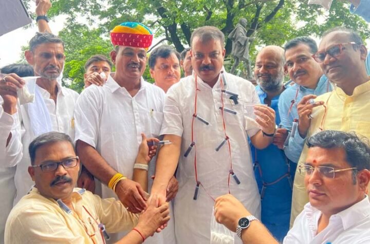 1 min read कांग्रेस विधायकों ने इंजेक्शन और नकली ड्रग्स की सामग्री लेकर विरोध प्रदर्शन किया July 31, 2025 Rashtra Abhiyan News