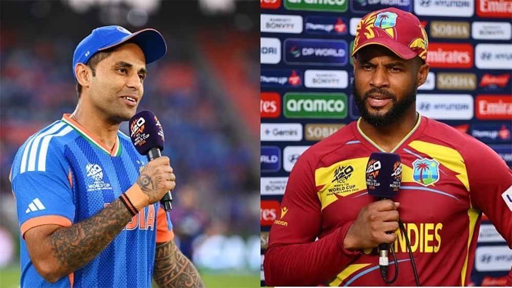 भारतीय क्रिकेट टीम के कप्तान सूर्यकुमार यादव ने रविवार को कोलकाता के ईडन गार्डन्स में टॉस जीतकर पहले गेंदबाजी करने का फैसला किया है। सेमीफाइनल में इंग्लैंड. दक्षिण अफ्रीका और न्यूजीलैंड की टीमें पहुंच चुकी हैं और अब अंतिम स्थान के लिए भारत और वेस्टइंडीज की टीमें आमने-सामने हैं। ईडन गार्डन्स में होने वाले इस मुकाबले में जो भी टीम जीतेगी, उसके सेमीफाइनल का टिकट मिलेगा। वेस्टइंडीज और भारत ने सुपर-8 में एक-एक मुकाबले जीते हैं, जबकि दोनों टीमों को दक्षिण अफ्रीका के खिलाफ हार का सामना करना पड़ा।