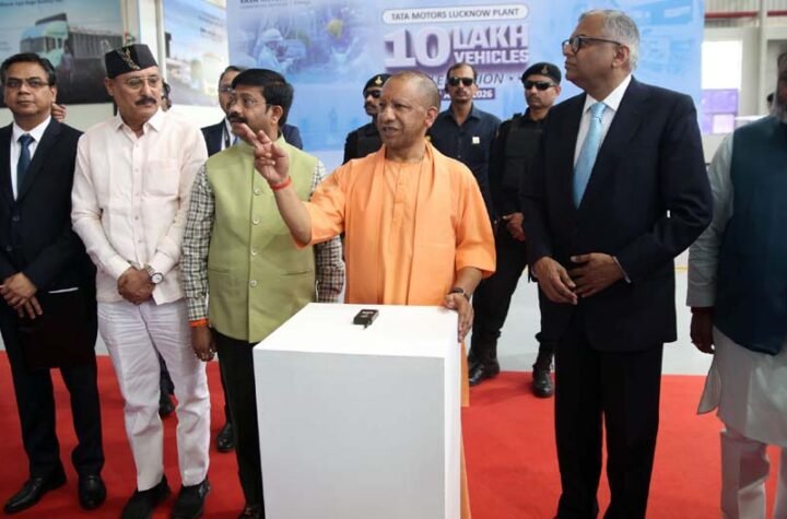 मुख्यमंत्री योगी आदित्यनाथ ने टाटा मोटर्स के लखनऊ प्लांट में 10 लाखवीं गाड़ी को किया फ्लैग ऑफ
