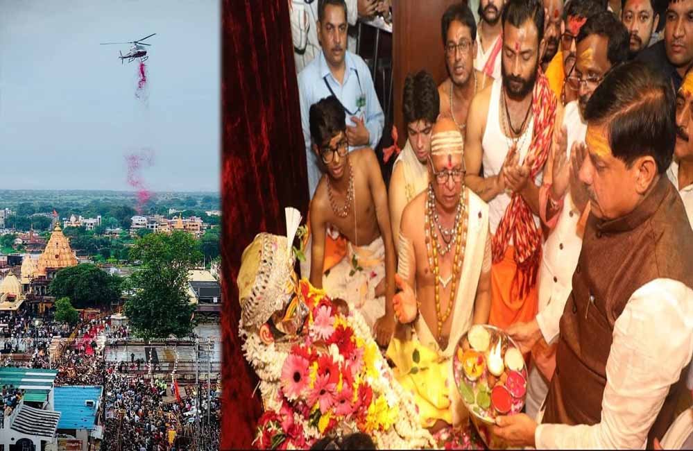 मुख्यमंत्री डॉ. यादव मंशानुरुप सवारी के मुख्य द्वार पर पहुंचने पर रजत पालकी में विराजित भगवान चंद्रमौलेश्वर पर हेलीकॉप्टर से पुष्प वर्षा की गई। रजत पालकी में विराजित भगवान चंद्रमौलेश्वर जैसे ही मुख्य द्वार पर पहुंचे असंख्य श्रद्धालुओं ने भगवान महाकालेश्वर का स्वागत-वन्दन किया। सशस्त्र पुलिस बल के जवानों तथा प्रदेश के विभिन्न बटालियनों के जवानों द्वारा सवारी को सलामी दी गई। पालकी के आगे घुड़सवार दल, सशस्त्र पुलिस बल के जवान आदि की टुकडियां मार्च पास्ट करते हुए चल रही थी।