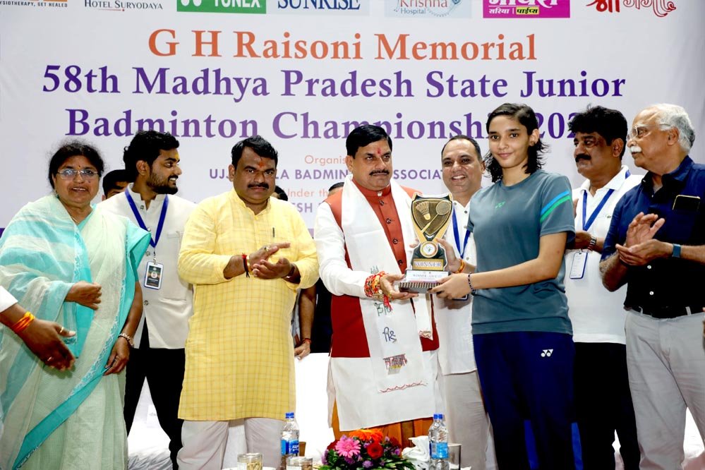 मुख्यमंत्री डॉ. यादव ने बैडमिंटन चैंपियनशिप के विजेताओं और उपविजेताओं को पुरस्कार वितरण किये। चैंपियनशिप के फाइनल में जीते खिलाड़ी मिक्स्ड डबल अंडर 17 कन्हैया शर्मा, कृतिका पाठक, मिक्स्ड डबल्स अंडर 19 ओम पटेल, कीर्ति तिवारी, बॉयज सिंगल अंडर 17 मेदांश शर्मा, बॉयज सिंगल अंडर 19 नैवेद्य तोंडे, गर्ल्स सिंगल अंडर 17 नित्या जादौन, बॉयज डबल अंडर 19 देव कुमावत, अंगद मुछाल, गर्ल्स डबल अंडर 19 आस्था शर्मा, कीर्ति तिवारी, गर्ल्स सिंगल अंडर 19 माही पवार, बॉयज डबल्स अंडर 17 शौर्य मिश्रा, अथर्व सक्सेना, गर्ल्स डबल अंडर 17 नित्या जादौन, नाविका सोमानी को ट्राफी प्रदान की गई।