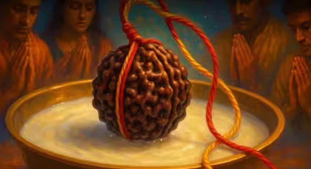 घी के बाद रुद्राक्ष को गाय के दूध में भिगोकर रखें.